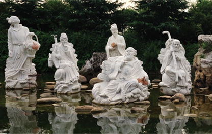 道教八仙由來自不同社會階層的人物組成。他們信仰相同,各有絕技,廣為民間傳頌?!鞍讼蛇^海”說的是八位神仙去蓬萊仙島采靈芝仙藥,來到東海邊時,海龍王作祟,海浪滔天。眾仙商議,各自施展本領,踏浪渡海與龍王鏖戰,結果龍王大敗,八仙乘勝過海到達蓬萊仙島,采回靈芝仙藥,繼續為民眾做善事。